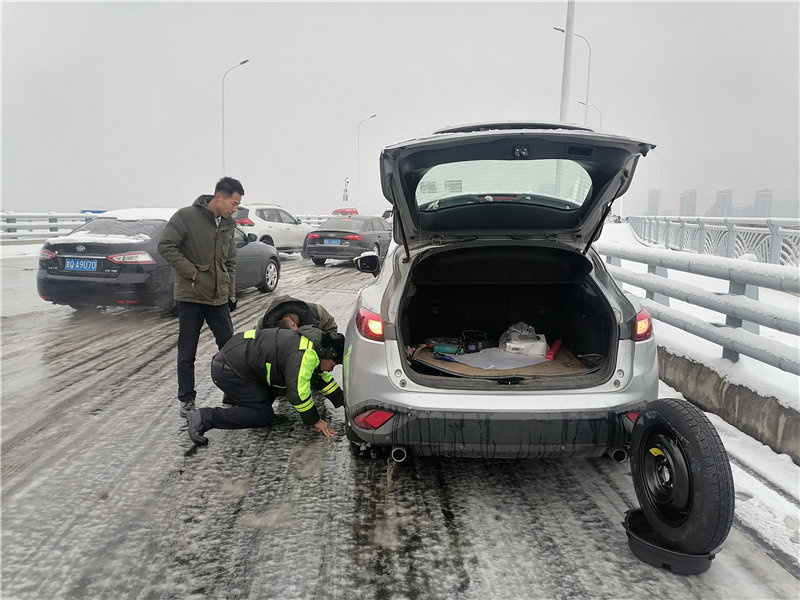 期间,大队坚持“警力跟着警情走、警力跟着路况走”,最大限度提高路面见警率,根据辖区道路交通实际状况,紧盯积雪严重、易结冰、易打滑路段,聚焦城区主要道路、国省道沿线,采取固定执勤点位与巡逻相结合方式,强化巡逻管控,加强指挥疏导,并通过巡逻喊话、警灯警示等措施,引导车辆减速慢行、保持车距、安全通行,叮嘱骑乘群众,注意安全,需要停车时,不要紧急刹车,戴好安全头盔,防止意外发生。同时会同相关部门在积雪结冰路段进行了撒盐融雪,对巡逻过程中发现的滞留车辆、故障车辆,及时开展救援,最大限度预防和减少因恶劣天气引发的交通事故和交通拥堵,全力保障道路交通安全畅通。