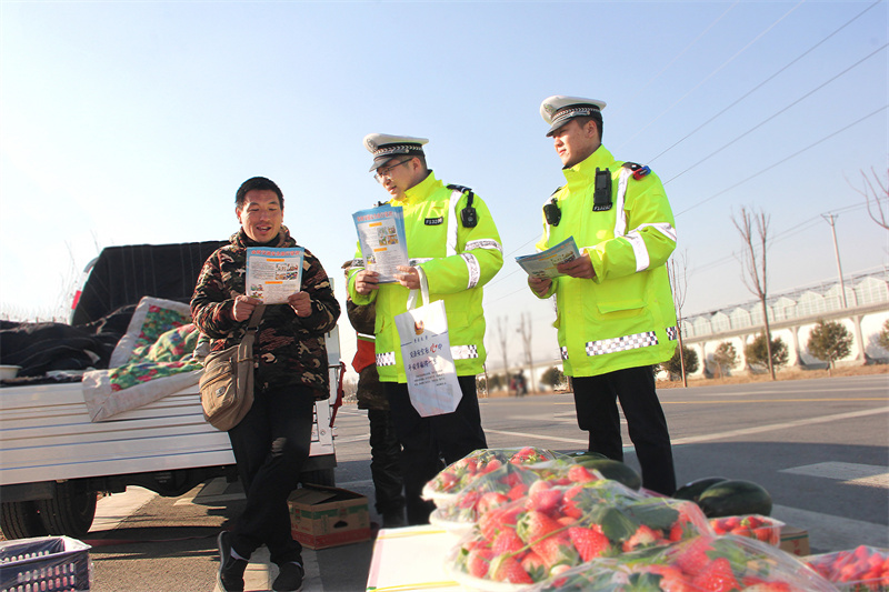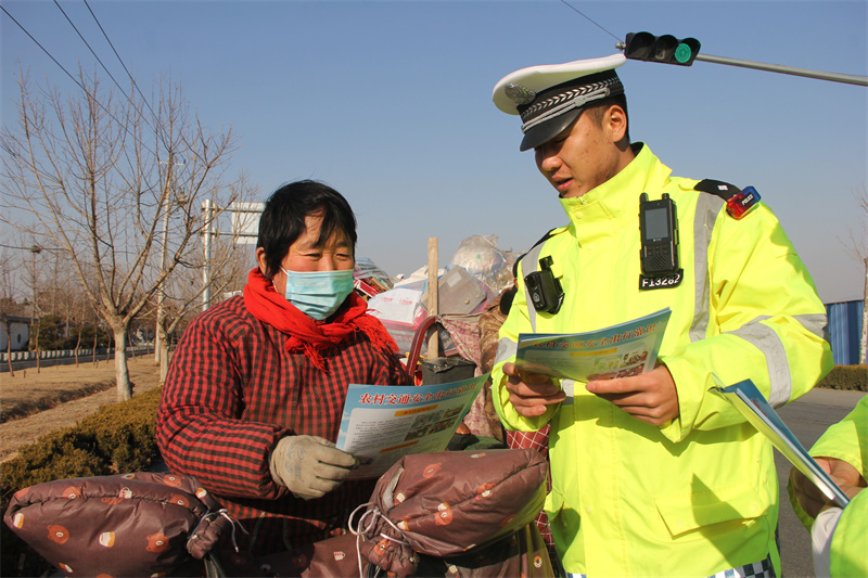 临沂在线讯(吴云富)1月25日,临沂市公安局交警支队费县大队民辅警深入上冶镇万仓村,走村入户开展春运交通安全宣传活动。活动中,通过与群众面对面“拉家常”的沟通方式与群众交流互动,为群众发放宣传资料、讲解典型事故案例、普及交通法规,劝导交通违法行为,提醒春运期间安全出行注意事项,让大家认识到交通安全的重要性与必要性,引导更多群众自觉遵守交通法规,养成安全文明出行的习惯。