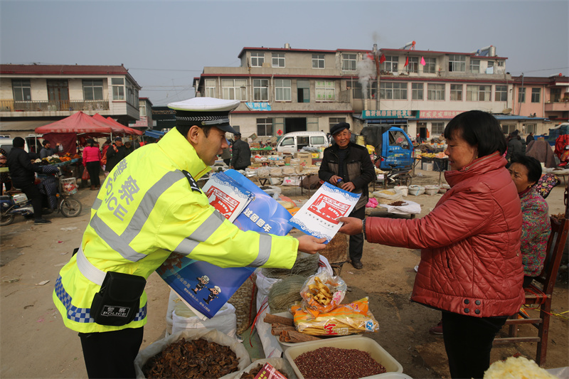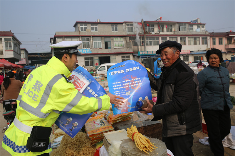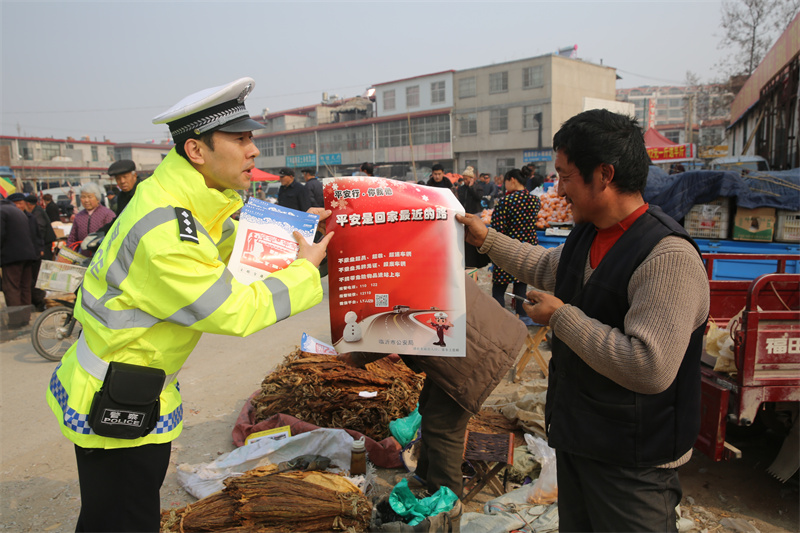 临沂在线讯(魏善勇 李敬轩)1月28日,临沂市公安局交警支队蒙阴大队针对年关切近,山区群众出行迎来高峰,各类交通安全问题突出,极易发生交通事故的实际,组织开展文明交通宣传赶年集活动,成立6支流动宣传队在山区巡回赶四集,利用山区群众赶年集人员相对集中的时机,开展冬季交通安全知识宣传,文明交通常识宣传,“一盔一带”知识宣传,为山区群众送平安祝福,教育群众依法、文明、礼让、谨慎参与交通,告别不文明交通行为,确保节日出行安全,保证山区群众平安吉祥过大年。图为在蒙阴、垛庄大集宣传时的画面。