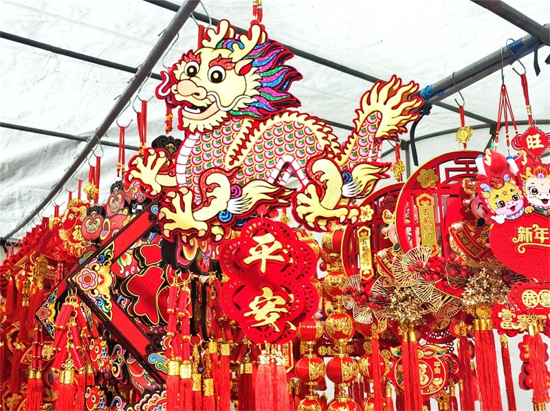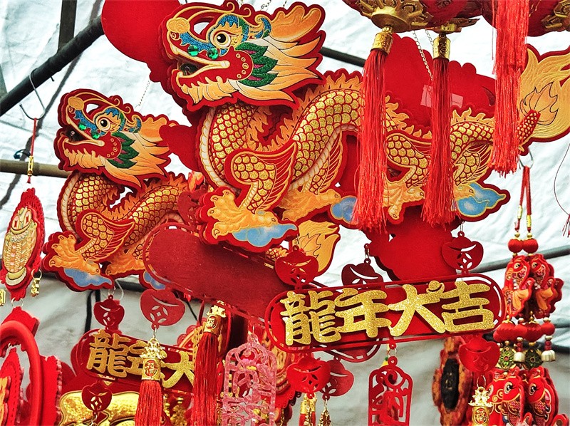 临沂在线讯(高军)1月29日傍晚,在郯城县团结路西首青年公园附近的迎春节饰品一条街上,许多商家排满了祥龙送福、金龙送福、龙年吉祥、龙保平安等的“龙”字饰品。“龙”字饰品各式各样,琳琅满目,应有尽有,春节气息越来越浓厚,人们红红火火迎龙年。