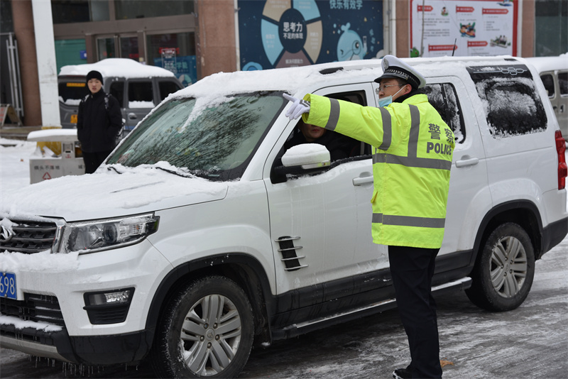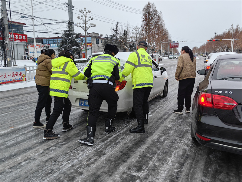 临沂在线讯(魏善勇 李敬轩)2月1日,蒙阴境内迎来大雪天气,由于山区风力较大、气温较低,山区道路出现冰雪路面。由于临近春节人多车多,道路交通安全问题十分突出。临沂市公安局交警支队蒙阴大队以雪为令全员上路,由大队领导带队分片包干,强化交通指挥疏导,清理非法占道,帮助故障车辆推车,并对过往车辆进行及时的安全提示,引导车辆缓慢有序流动。同时,在复杂的山区道路坡道、弯道、窄路、窄桥、路形复杂地段开展定点管理,确保了全县道路的安全与畅通,有力护卫了山区群众平安出行路。