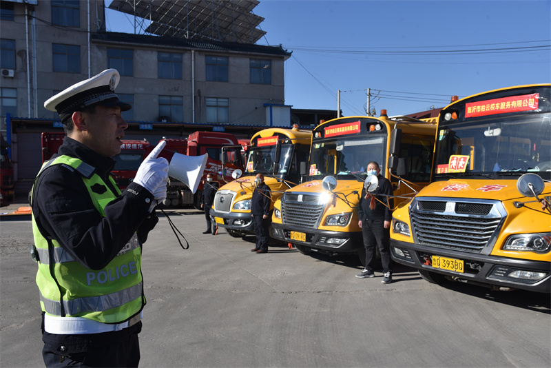 临沂在线讯(魏善勇 李敬轩)2月18日开始,临沂市公安局交警支队蒙阴大队针对中小学生即将迎来开学季,校车交通安全问题突出的实际,组织警力深入校车公司,采取“校车驾驶人文明驾驶宣誓;与校车驾驶人签订《校车行车安全责任书》;校车安全设施检查”等措施,把好校车安全关。同时,在校车公司驾驶中落实“安全行车日讲评制度”,实行“校车驾驶人安全例会制度”,推行“校车驾驶人安全评估制度”,切实筑牢校车驾驶人预防交通事故的“思想防线”,以确保校车安全万无一失,真情护航学生平安上学路。