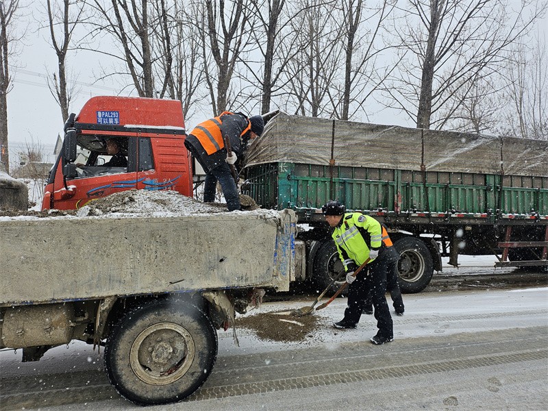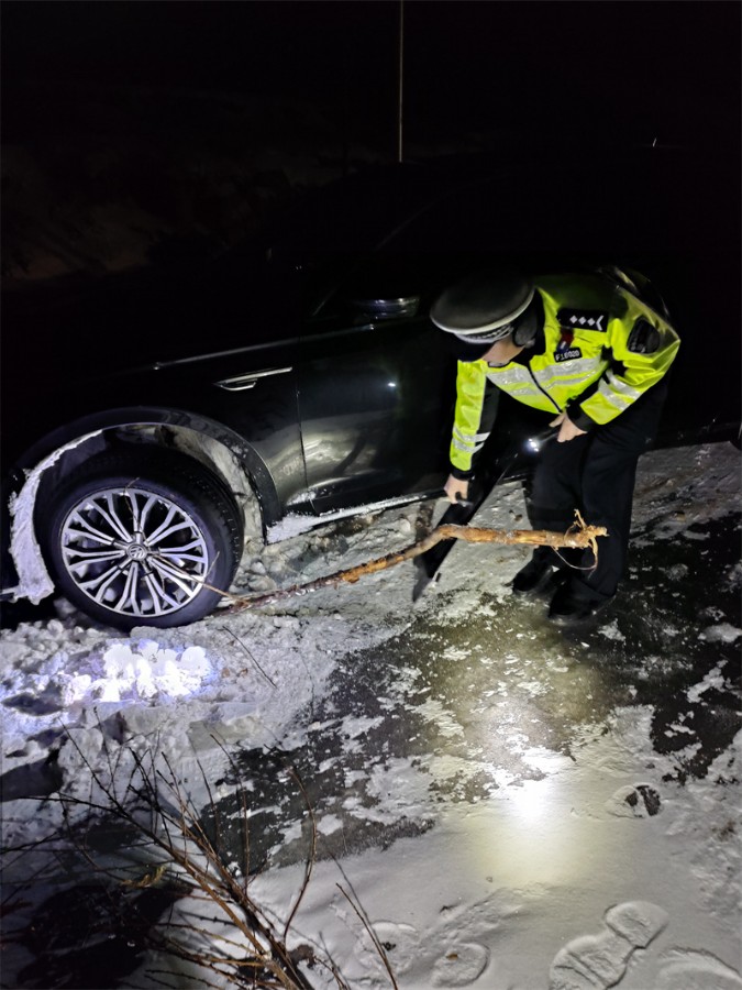 临沂在线讯(魏善勇 李敬轩)2月19日至22日,蒙阴境内持续暴风雪天气,暴雪、冻雨、严寒、结冰、大风相互叠加,导致山区道路积雪冰冻严重,复杂的道路交通,凌冽的刺骨寒风,持续不断的降雪,考验着临沂市公安局交警支队蒙阴大队民辅警的意志。蒙阴交警以雪为令,以动制冻,实行“大队领导包片,中层干部包线,民警包路段,内勤外勤合力保安畅”的工作机制,实行三班倒,保证4个昼夜连续作战,融雪、铲雪、推车、指挥、引导一环紧扣一环,解危、助困、供水、送饭、故障排除紧张连贯,蒙阴交警多措并举保畅通,情系群众平安行,以实际的行动践行人民交警为人民的宗旨,树立了沂蒙交警的良好形象。