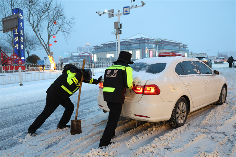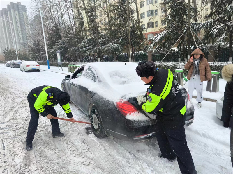 爱心融冰雪,守护传温情。在大雪纷飞里,临沂交警全警动员奔走在服务群众最前沿,他们引导车辆、撒盐除雪,用锹铲、手推等方式帮助被困车辆,为被困司机送开水、送食物……,用自己的温暖守护传递着交警的忠诚与温情,让群众切实感受到雪“警”怡人,暖心如故。