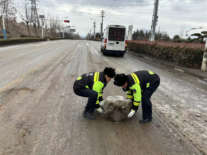 临沂在线讯(孙常胜)节后的一场大面积冻雨冰雪与城市相碰撞,一个个在风雪中坚守岗位的“荧光绿”,不惧冬日严寒,成为风雪中最美的警色。