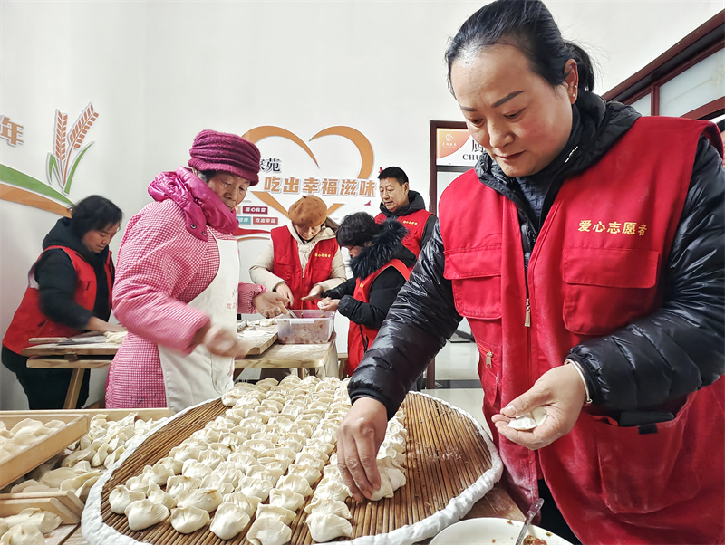 郯城县马头镇为加强农村养老服务力度,积极创建五处孝老食堂,广泛发动社会力量奉献爱心,解决好特殊人群的吃饭问题。这一做法的实施推广,不仅让老人们享受到改革发展的红利,而且为全面推进乡村振兴增添保障。为庆祝“三八”妇女节,郯城县马头镇慈善爱心协会志愿者带着准备好的面粉、牛肉馅、节日蛋糕,分别到村街孝老食堂开展了这一有意义的活动。