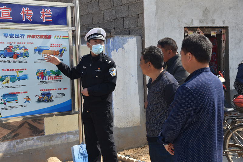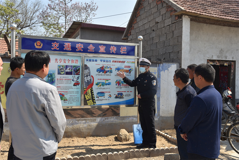 临沂在线讯(魏善勇 李敬轩)临沂市公安局交警支队蒙阴大队,针对辖区山区道路交通安全问题突出的实际,将宣传教育作为特殊战斗力,在公路沿线村庄安装交通安全宣传栏、交通安全提示牌、交通安全图板,积极搭建农村宣传教育阵地,为山区群众学习掌握交通安全知识提供支持,努力提升广大人民群众的交通安全意识,文明出行意识,增强防范交通事故的能力,助力山区群众出行平安。图为4月2日民警在蒙阴县大常路村利用宣传栏宣传文明交通知识。