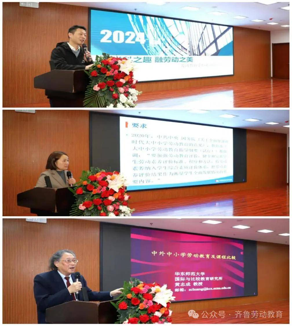 会上,国内劳动教育权威专家作专题讲座,山东省教育科学研究院党委委员、劳动教育教研员王秀玲主持。湖北省教育科学研究院苏航研究员以《跨学科之趣融劳动之美》为题,阐述了跨学科融合在劳动教育中的重要性。中国教育科学研究院万作芳教授以《小学劳动教育评价体系构建的思考》为题提出了构建科学、合理、全面的劳动教育评价体系的建议。华东师范大学黄志成教授以《中外中小学劳动教育与课程比较》为题,展示了国外劳动教育的先进经验和做法。