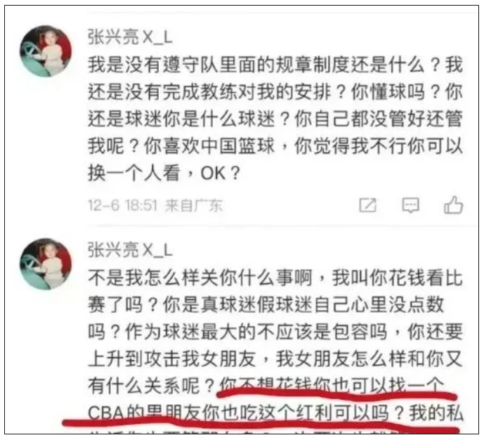 张兴亮此前在评论区开火:你不想花钱,你可以找一个CBA的男朋友,你也吃这个红利可以吗?我的私生活你也要管这么多?
