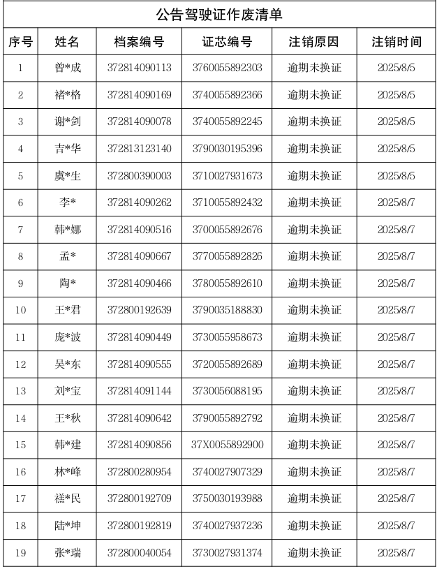 根据《机动车驾驶证申领和使用规定》(公安部令第172号)第七十九条第八项、第九项之规定,现对下列机动车驾驶证公告作废。