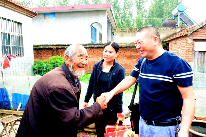 临沂在线讯 传承红色基因,凝聚红色力量。近日,在临沂市退役军人事务局和费县退役军人事务局的支持帮助下,山东省志愿服务联合会理事、山东省职工达人、沂蒙精神传承人、沂蒙精神传承爱心大使、沂蒙红哥尹志林千场沂蒙精神宣讲活动第196场,来到费县薛庄镇盘石村,带着精心准备的慰问品,专程探望99岁抗战老兵孙兴振。