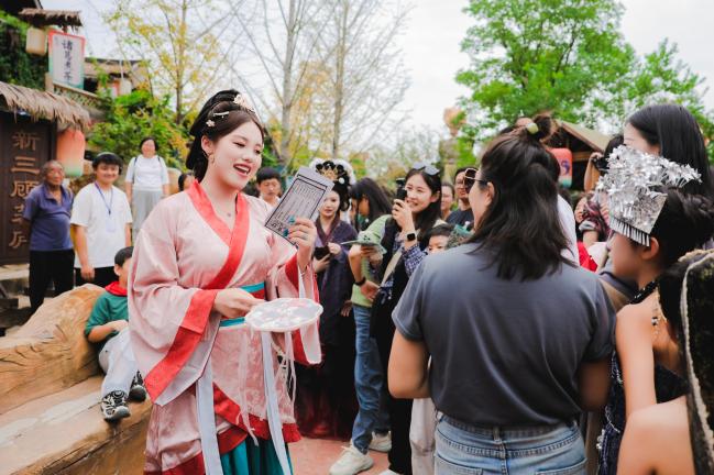 国庆期间,琅琊古城以琅琊名士诸葛亮为文化核心,打造诸葛村·隐士桃源,并通过精心构建的NPC矩阵,创新了一系列有文化底蕴的趣味互动,给游客带来耳目一新的沉浸式文旅体验。彼时的琅琊古城,更像是一个巨大的开放剧场。在这里,游客可以听慈祥的诸葛村长讲述诸葛亮的传奇故事;在茅庐中挑战小诸葛的聪明才智;还可以在小兔月饼铺与小兔掌柜攀谈,用银票买月饼,妙趣横生,参与感拉满。在嬉笑逗趣间全方位体验古代市井生活,情不自禁地爱上这里。