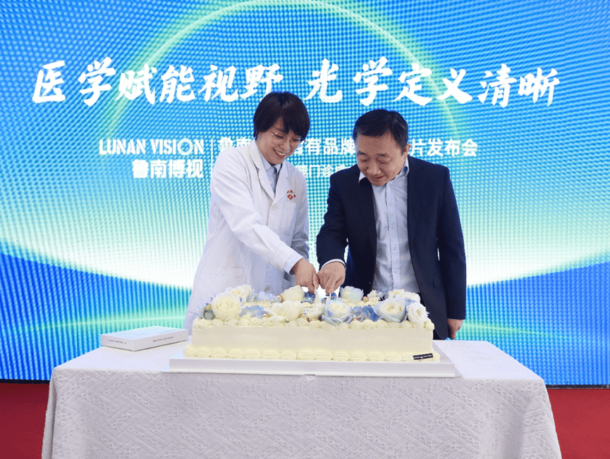 设备已成功解决多类疑难视觉问题。侯爱萍主任随后通过专题学术讲座, 深入剖析了干眼症的发病机理与系统化诊疗路径。两科室紧密联合,发挥专业特色, 推出“精准矫正+干眼诊治”一体化服务方案, 全面提升诊疗效率与患者视觉质量。随后, 现场举行了“鲁南博视”品牌启动仪式,嘉宾们在象征希望的光影中见证品牌启航, 并通过温馨的蛋糕分享环节凝聚携手共进的美好寓意。