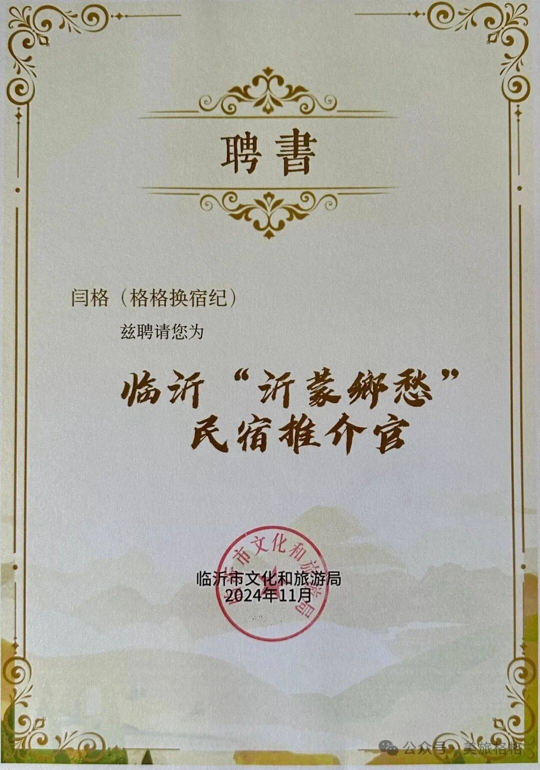 《格格换宿纪》的实践,不仅为更多自媒体创作者提供了可借鉴的样本,也为乡村振兴注入了文化传播的强劲动力。凭借专业的内容创作与突出的传播成效,2025年,栏目主理人闫格先后获聘临沂文旅推荐官、首位“沂蒙乡愁”民宿推介官,进一步强化了栏目在乡村文旅传播领域的公信力与影响力。