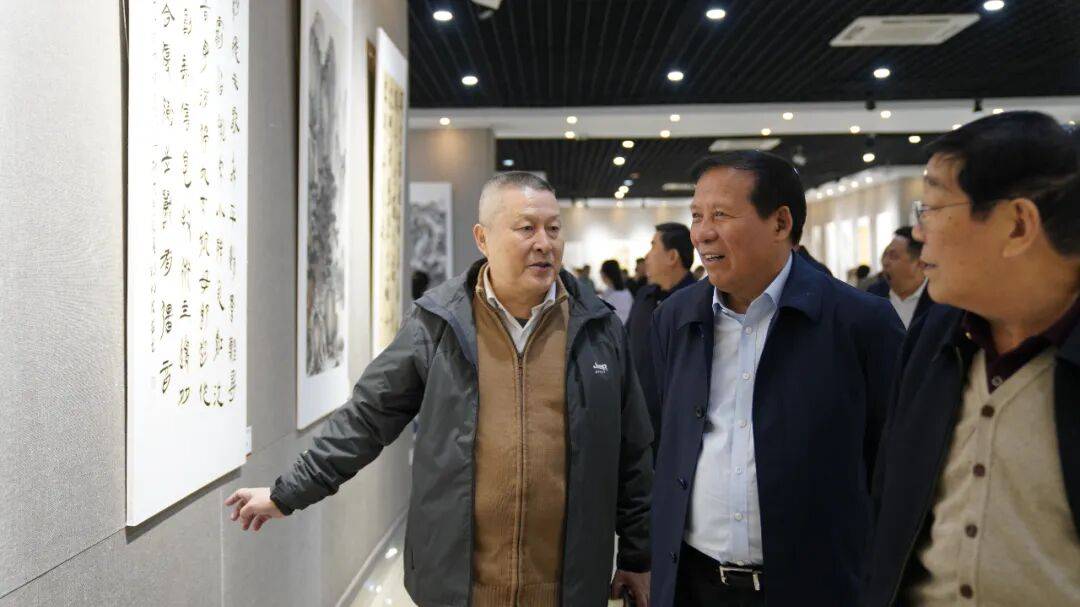 临沂在线讯 10月25日上午,康谷温泉杯·临沂市“人长寿”银龄书画艺术展,在临沂市文化中心文化馆美术馆顺利开幕。市人大常委会原党组书记、第一副主任、市关工委主任朱绍阳同志;市人大常委会原党组副书记、副主任、市慈善联合总会会长徐福田同志;市老干部书画研究会会长沈孝生同志;市慈善联合总会副会长厉建仁、邹际国同志;市文联原主席刘建都同志;市文联党组成员、副主席于泳同志;老干部书画研究会监事长张瑜同志、副会长王经耀、杨明友、王昕明、刘凤云等同志;省女画家协会副主席、市女画家协会主席刘玉英同志;市民政局原副局长、著名画家吴晓玲同志;市收藏协会主席、临沂慈善书画院院长李军同志;市美协副主席、秘书长梁庸同志;市美协主席团成员、临沂慈善书画院执行院长诸葛瑞波同志;兰山区美协主席徐庆战同志;临沂康谷温泉疗养院院长魏荣堂同志;山东植汇升科技集团董事长萧大为同志;上海齐昔生物集团董事长孙庆文博士;常健医生集团董事长黄金刚同志;市文房四宝协会会长张兰波同志;羲之书法创始人徐剑飞博士;市女企业家商会会长周朝霞女士;市女企业家联谊会会长丁强女士;著名书画家王振雷、刘中华、周洪胜、周雪峰、李思娜以及部分参展作品作者、来自社会各界的爱心企业家、艺术家、新闻媒体工作者等三百余人参加了开幕式。