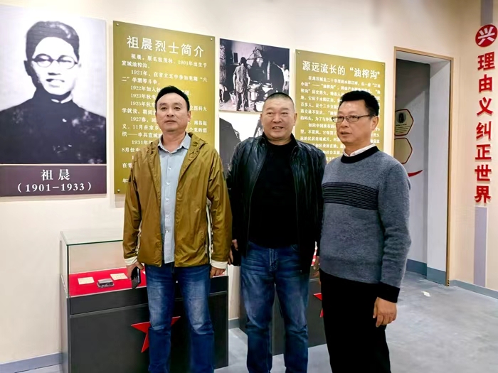 尹志林带领专业设计团队一行5人,驱车近600公里,来到朱桥乡油榨社区祖晨烈士纪念馆,与祖琦、副乡长高敏、武装部长郑之攀等人一起,瞻仰了纪念馆。对纪念馆的提升改造扩建布展和社区红色文化景观的打造、红色教育、未来发展方向等问题,大家共同进行了实地考察和论证。在会议室,与乡党委书记陈文健等领导深入探讨了相关事宜。此行也是尹志林千场沂蒙精神宣讲活动的第198场。